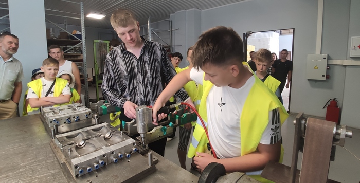 During the excursion the children got acquainted with the history of the enterprises formation, they saw with their own eyes the production technology of the products: bottles, canisters, caps, visited the workplaces of their parents, looked into the administrative offices and also visited the warehouses of finished products.