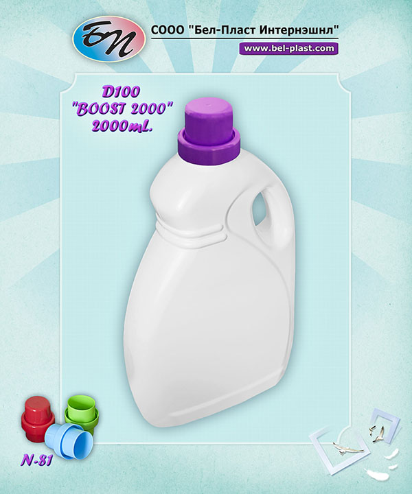 СООО "Бел-Пласт Интернэшнл" приступил к производству бутылки D100 "Boost 2000" ёмкостью 2 литра. Бутылка предназначена для фасования, безопасной транспортировки и хранения продуктов бытовой химии.
