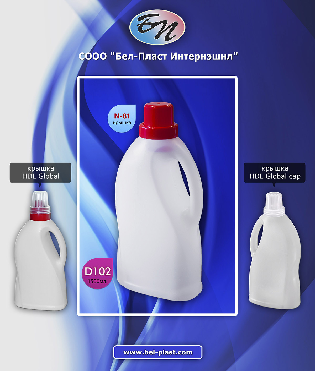 СООО "Бел-Пласт Интернэшнл" приступило к производству бутылки D102 ёмкостью 1,5 литра. Бутылка предназначена для фасования, безопасной транспортировки и хранения продуктов бытовой химии.
