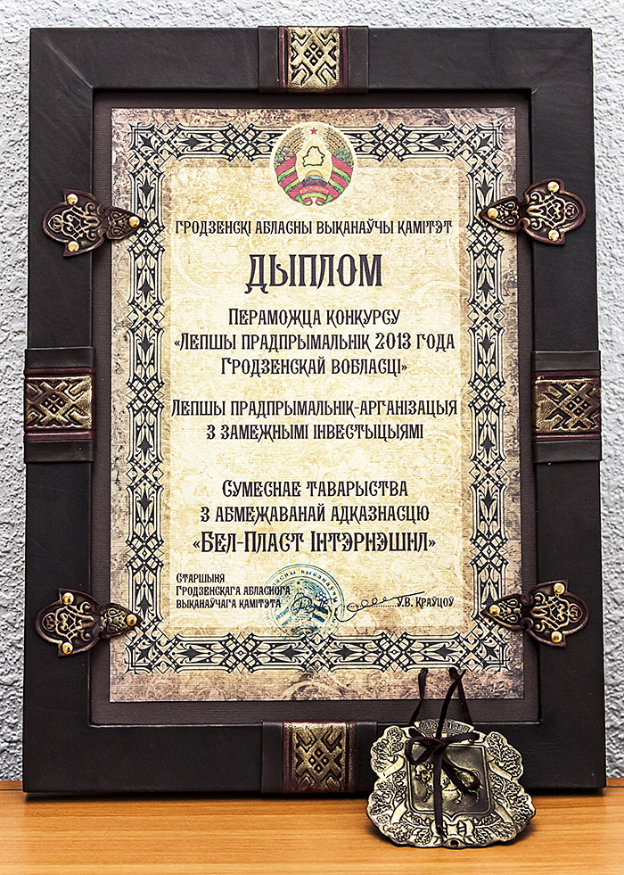 СООО «Бел-Пласт Интернэшнл» стало победителем конкурса «Лучший предприниматель 2013 года Гродненской области» в номинации «Лучший предприниматель – организация с иностранными инвестициями». По итогам финансово-хозяйственной деятельности за 2013 год среди юридических лиц и индивидуальных предпринимателей наше предприятие стало одним из самых успешных предприятий области и показало лучшие результаты работы в 2013 году.