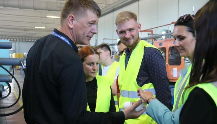 Гостей встретил генеральный директор Анатолий Великин и рассказал о структуре, работе и продукции предприятия. Всех заинтересовал вопрос: "Как стать руководителем?"