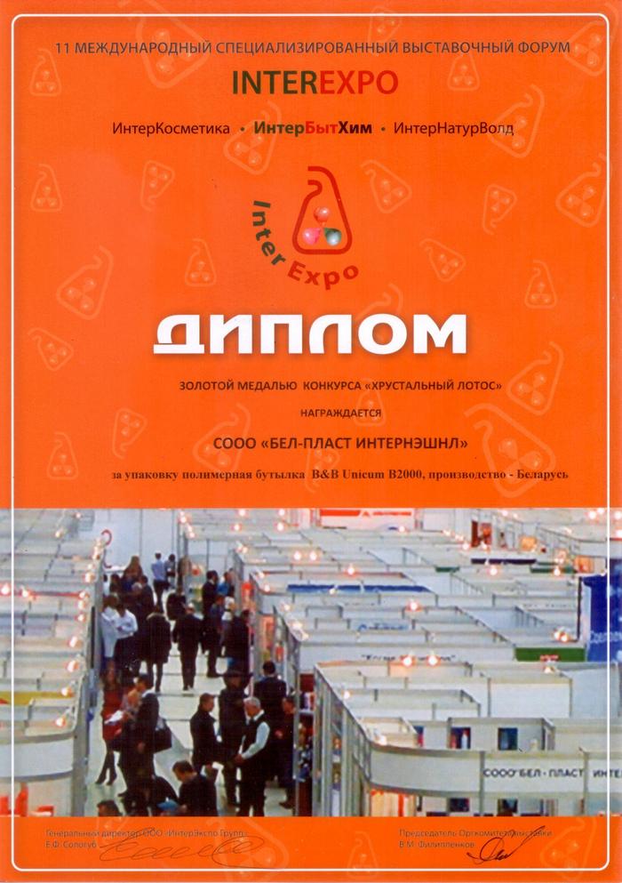 В номинации на лучшую продукцию бытовой химии, средств личной гигиены и сопутствующих товаров хозяйственного назначения двумя золотыми медалями награждены: бутылка B&B Unicum B2000 и бутылка B&B Unicum MP 600, серебряной медалью - бутылка М109.
