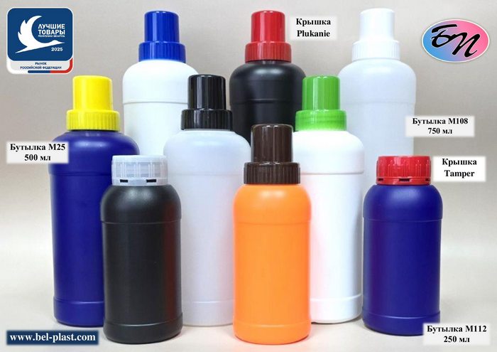 Победу одержала серия бутылок полимерных М112, М25, М108 в комплекте с крышками Tamper и Plukanie, предназначенных для бытовой химии и парфюмерно-косметической продукции, как для жидких, так и для сыпучих продуктов. Бутылки производятся объемом 250, 500 и 750 мл, имеют высокую степень герметичности, ударопрочности и химической стойкости, выдерживают высокую нагрузку при сжатии. Крышка Tamper имеет предохранительное кольцо и уплотнительную прокладку, крышка Plukanie служит стаканчиком для дозирования 30 мл. Бутылки и крышки после использования пригодны для вторичной переработки.