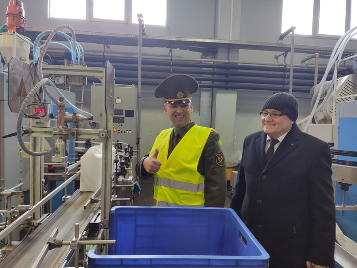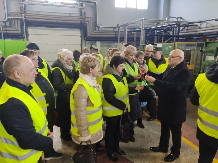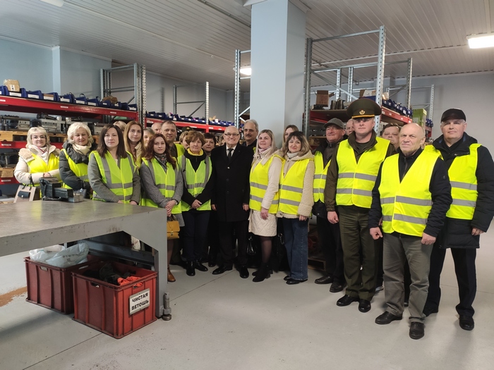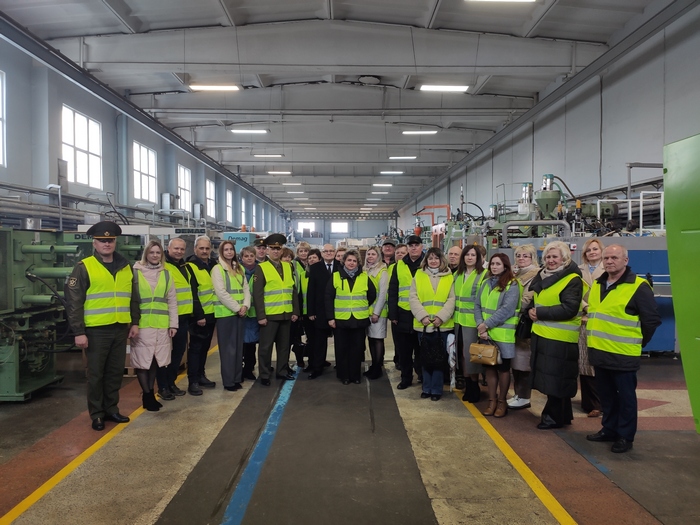 СООО "Бел-Пласт Интернэшнл" посетили представители Лидского военкомата. В ходе визита проведено ознакомление с предприятием и процессом производства пластмассовой упаковки и условиями труда.